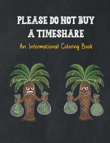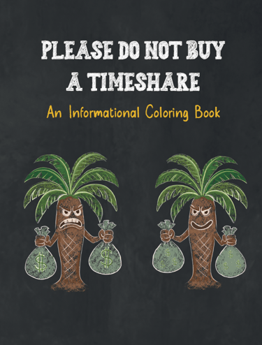 Lied to by a timeshare salesperson? Already made a horrible mistake? Or do you know someone at risk? Please Do Not Buy a Timeshare has more than 60 coloring pages designed to explain timeshares, and to help protect people against them.